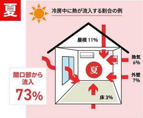 夏は窓から熱が73%流入