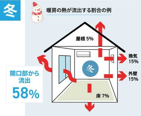 冬は窓から熱が58%流出