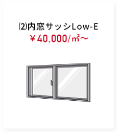 | (1)Low-Eペアガラス (大判) 入替え | 40,000円/㎡~ | (2) 内窓サッシ (Low-Eペアガラス) | 40,000円/㎡~ |
